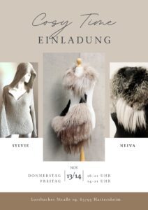 Ein gemütliches get together mit meinen zwei Gästen: NEIVA mit ihrer neuen felligen Kollektion und SYLVIE mit ihren kuscheligen Stricksachen. Und natürlich meine Taschen und ich.